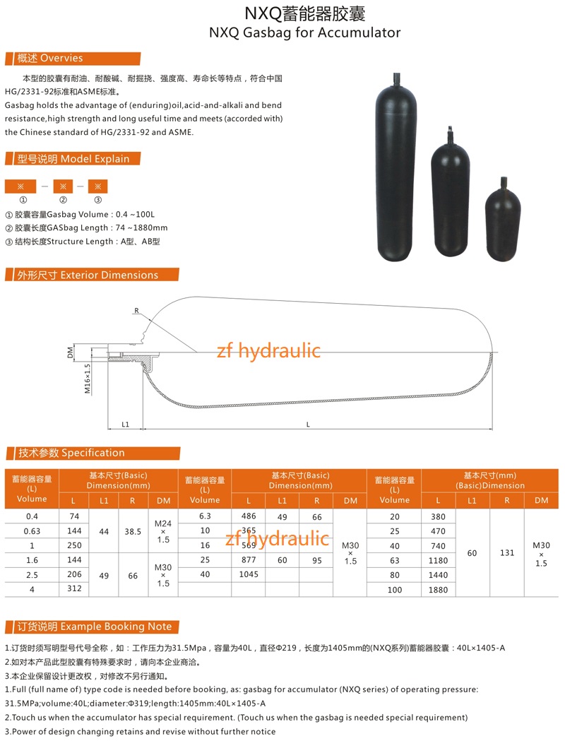 FGXQ-1 FGXQ-2 FGXQ type non-seperated accumulators