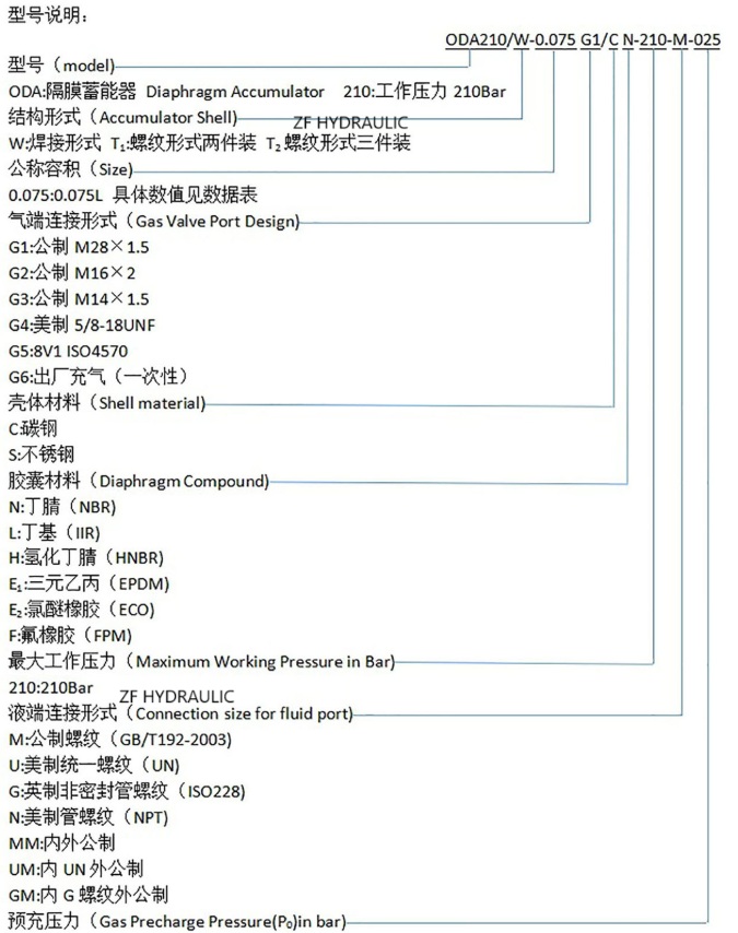 Product name : ODA210 ODA250 OAD100 hydraulic diaphragm accumulator