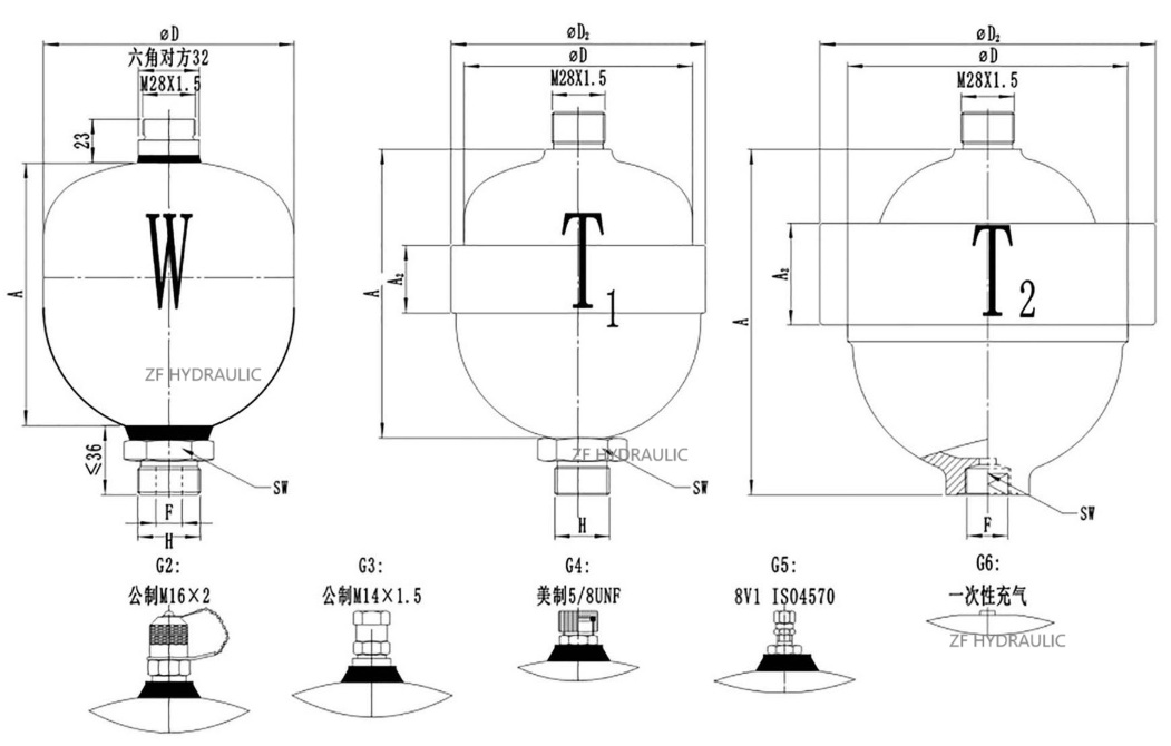 Products > Accumulator > > ODA210 ODA250 OAD100 hydraulic diaphragm accumulator