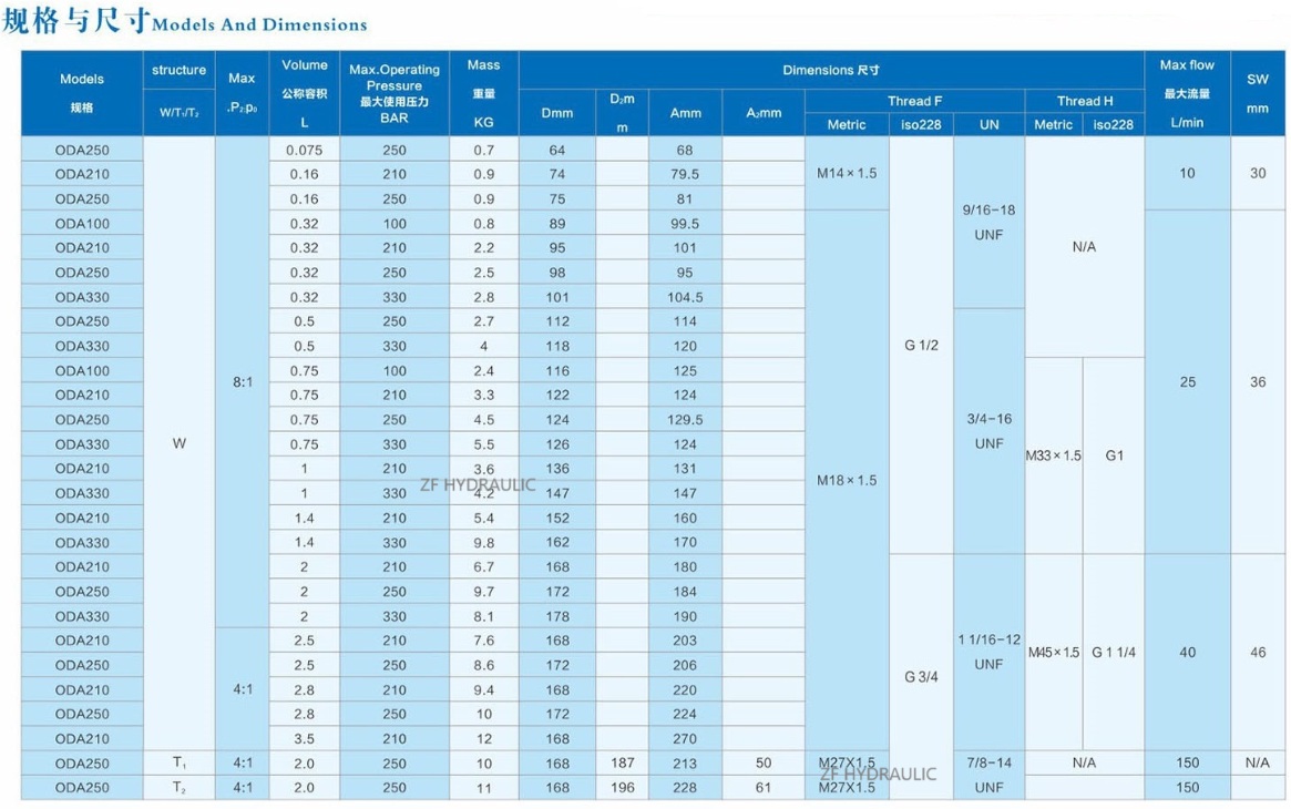 ODA210 ODA250 OAD100 hydraulic diaphragm accumulator